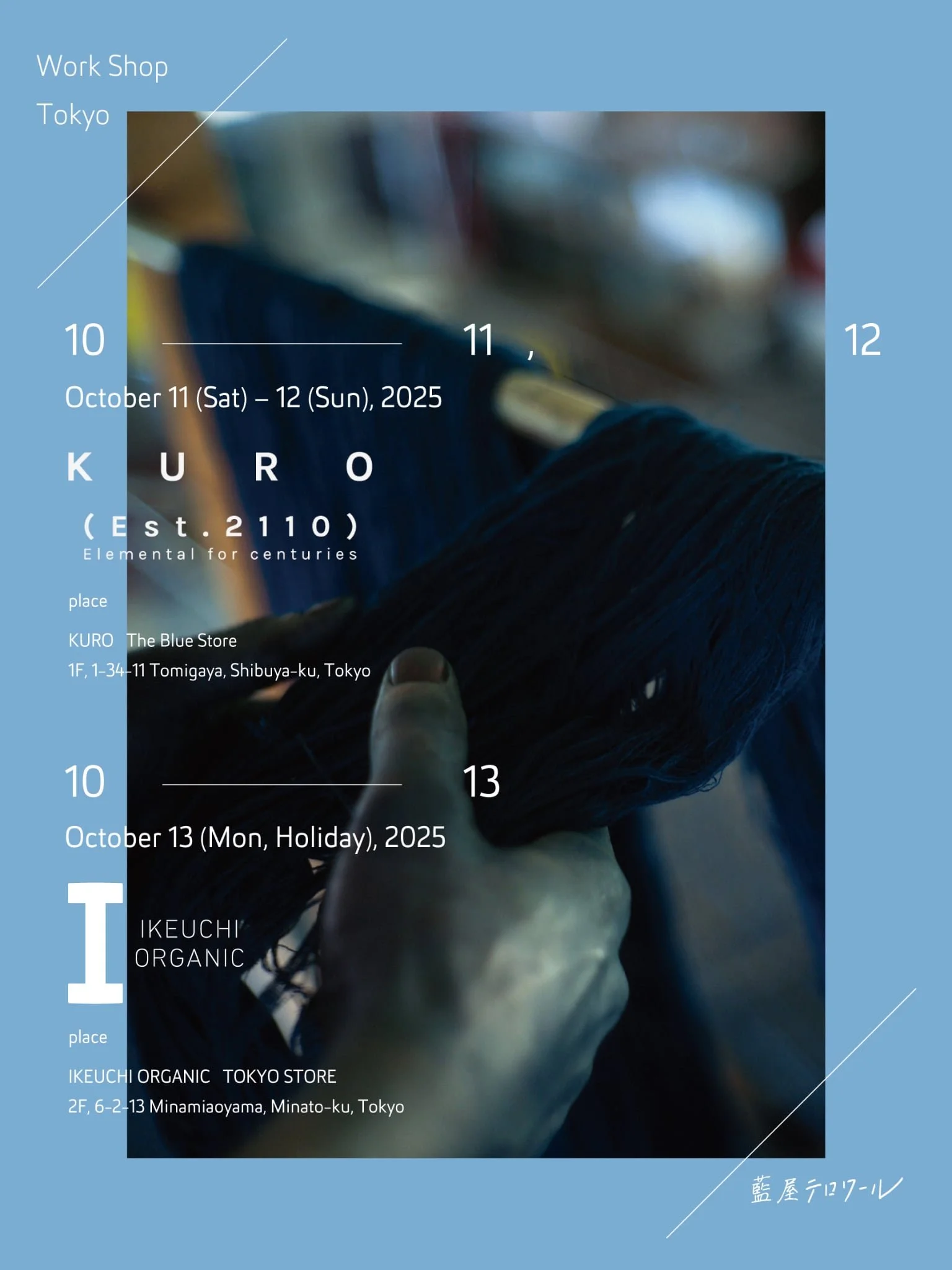 10/11(土)~13(月・祝) 藍染ワークショップを東京で開催します